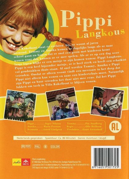 Roodharige Pippi Langkous neemt haar intrek in de leegstaande villa Kakelbont. Dat is dan mooi geregeld: met niemand wat te maken en alle tijd om haar nieuwe vriendjes Tommy en Annika die om de hoek wonen, uitgebreid over vader Langkous te vertellen. Die is namelijk zeekapitein en ook nog koning van Taka-Tukaland. Het blijft natuurlijk oppassen voor mevrouw Prysselius, directeur van het Kinderbureau, die Pippi een keurige opvoeding wil geven. Maar echt gevaarlijk zijn die twee dieven die het op Pippi's goud gemunt hebben.