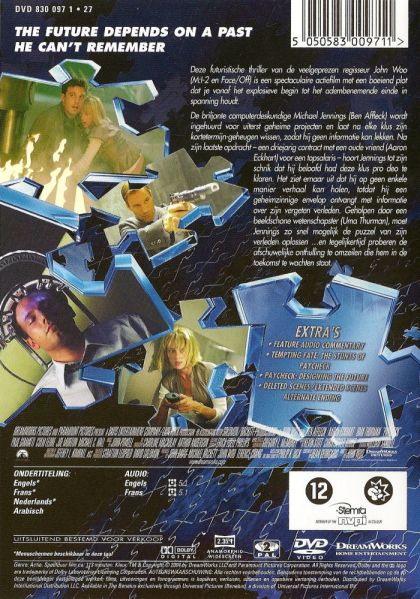 Een ingenieur werkt al drie jaar lang aan een geheim project. Op een dag wordt hij wakker en ontdekt dat zijn werkgever de delen van zijn geheugen die over het project gaan, heeft gewist. Wanneer hij zijn 'paycheck' wil ophalen blijkt dat hij heeft ingestemd met betaling in zonderlinge voorwerpen in plaats van geld. Hij probeert radeloos de stukjes uit zijn geheugen terug te vinden terwijl blijkt dat ook de overheid achter hem aan zit. Gebaseerd op een verhaal van Philip K. Dick
