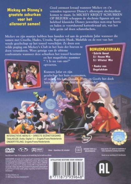The villains from the popular animated Disney films are gathered at the House of Mouse with plans to take over. Soon, the villains take over the house and kick out Mickey, Donald and Goofy. It's all up to Mickey and his friends to overthrow evil and return the House of Mouse to normal--or as close to normal as it gets.