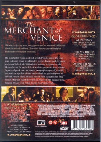 Venice, 1596. Bassanio begs his friend Antonio, a prosperous merchant, to lend him a large sum of money so that he can woo Portia, a very wealthy heiress; but Antonio has invested his fortune abroad, so they turn to Shylock, a Jewish moneylender, and ask him for a loan.