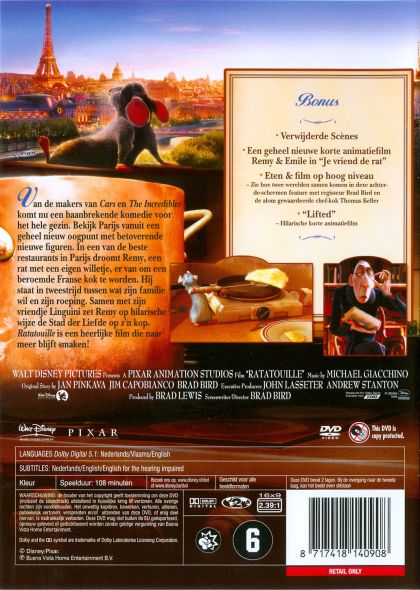 A rat named Remy dreams of becoming a great French chef despite his family's wishes and the obvious problem of being a rat in a decidedly rodent-phobic profession. When fate places Remy in the sewers of Paris, he finds himself ideally situated beneath a restaurant made famous by his culinary hero, Auguste Gusteau. Despite the apparent dangers of being an unlikely - and certainly unwanted - visitor in the kitchen of a fine French restaurant, Remy's passion for cooking soon sets into motion a hilarious and exciting rat race that turns the culinary world of Paris upside down.