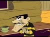 Despite Lucky's warning, the governor who wants to limit prison costs allows rancher Joe to take the Daltons for 'rehabilitation trough farm labor'. Thre crooks find earning their keep under a foreman's whip intolerable, ironically most of all Averel, although he is spoiled to his brothers' envy by farmer's wife Cynthia, who has the hots for the tall idiot, who alas hates kisses so much Lucky finds him in jail having dug a tunnel back in. By the time Joe manages to mount their escape, they get both Lucky and a woman scorned on their trail.