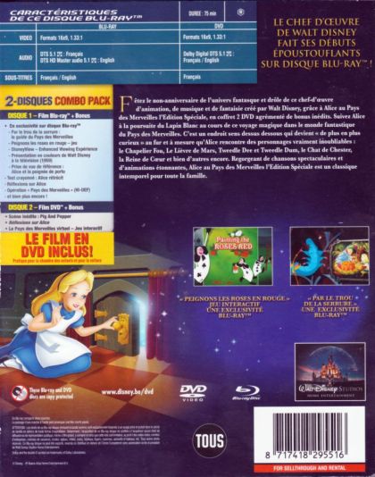 | Writer | Lewis Carroll, Winston Hibler, Ted Sears, Bill Peet, Erdman Penner, Joe Rinaldi, Milt Banta, William Cottrell, Dick Kelsey, Joe Grant, Dick Huemer, Del Connell, Tom Oreb, John Walbridge, Aldous Huxley | |