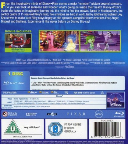 When 11-year-old Riley moves to a new city, her Emotions team up to help her through the transition. Joy, Fear, Anger, Disgust and Sadness work together, but when Joy and Sadness get lost, they must journey through unfamiliar places to get back home.