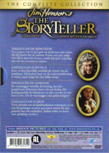 This is the second series, following Jim Henson's The Storyteller, which aired in 1988. The title role is played by Michael Gambon this time and his faithful dog is there, still voiced by Brian Henson. Instead of the European folk tales told in the first season, this series of four deals with the ancient Greek Myths. Please note: If you are planning on watching the series and are unfamiliar with the myths being portrayed, the episode descriptions in this guide will all contain spoilers.