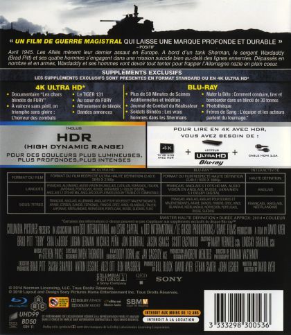 In the last months of World War II, as the Allies make their final push in the European theatre, a battle-hardened U.S. Army sergeant named 'Wardaddy' commands a Sherman tank called 'Fury' and its five-man crew on a deadly mission behind enemy lines. Outnumbered and outgunned, Wardaddy and his men face overwhelming odds in their heroic attempts to strike at the heart of Nazi Germany.