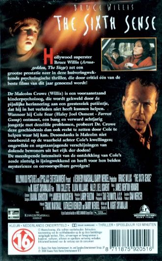 A psychological thriller about an eight year old boy named Cole Sear who believes he can see into the world of the dead. A child psychologist named Malcolm Crowe comes to Cole to help him deal with his problem, learning that he really can see ghosts of dead people.