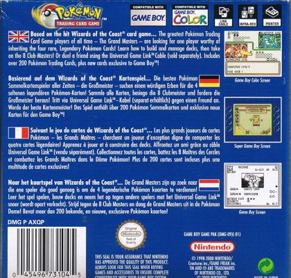 The greatest Pokemon Trading Card Game players of all time - the Grand Masters - are looking for one player worthy of inheriting the four rare, Legendary Pokemon Cards! Build new decks with the Auto Deck Machine, hone your skills on the Challenge Machine and test your ability in Challenge Hall. Expand your card collection, duel your way through 8 Club Masters and earn the right to challenge the Grand Masters in the Pokemon Dome! Shadowy figures, wise instructors and powerful opnnents await in the ultimate trading card game adventure.