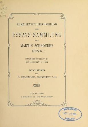 Concise Description Of The Collection Of Essays Of M. Schroeder