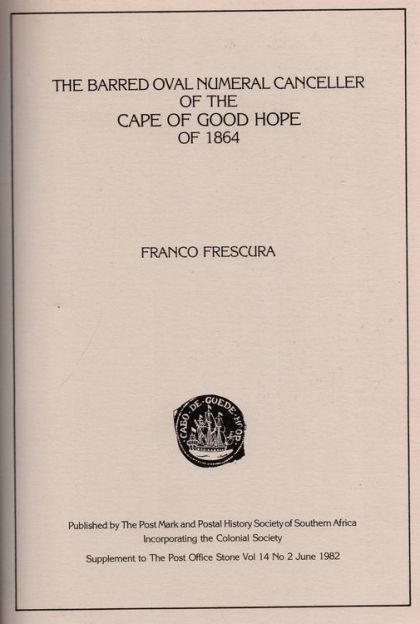 JURGENS, A.A. "The Handstruck Letter Stamps of the Cape of Good Hope from 1792 to 1853 and the Postmarks from 1853 to 1910". Cape Town, 1943.