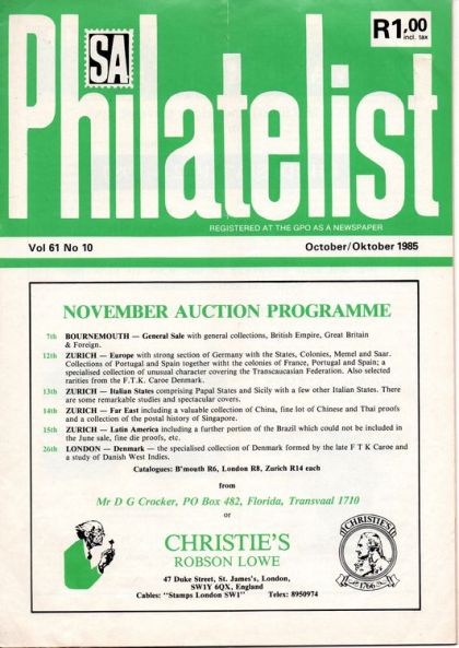 The South African Philatelist: vol. 61(10): 233-260, Issue #727