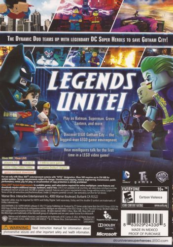 Batman and Robin return in LEGO(r) Batman 2: DC Super Heroes, the highly-anticipated sequel to the best-selling LEGO(r) videogame of all time, which to date has sold more than 11 million units worldwide. This time the Dynamic Duo join forces with other famous DC super heroes including Superman, Wonder Woman and Green Lantern to stop the notorious villains Lex Luthor and The Joker from destroying Gotham City. Batman fans of all ages will enjoy a new and original story filled with classic LEGO videogame action and humor as players fight to put the bad guys back behind bars.