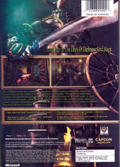 Tailored for hard-core gamers, Genma Onimusha is an enhanced version of the award-winning Onimusha Warlords and THE ultimate action-packed adventure title to own on the Xbox. It stars lone swordsman Samanosuke battling legions of demons and warriors on a quest to rescue his princess.