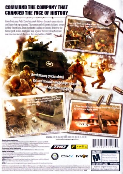 From the studio that brought you the blockbuster Game of the Year titles Homeworld and Warhammer 40,000: Dawn of War comes the next revolution in action strategy. Company of Heroes is a WW2 Real Time Strategy game that brings to life the journey of the brave men of Able Company as they fight across Europe in the greatest war mankind has ever known.
