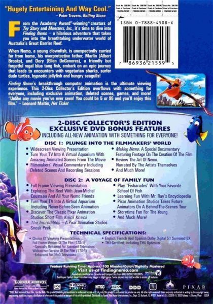 Nemo, an adventurous young clownfish, is unexpectedly taken from his Great Barrier Reef home to a dentist's office aquarium. It's up to his worrisome father Marlin and a friendly but forgetful fish Dory to bring Nemo home -- meeting vegetarian sharks, surfer dude turtles, hypnotic jellyfish, hungry seagulls, and more along the way.