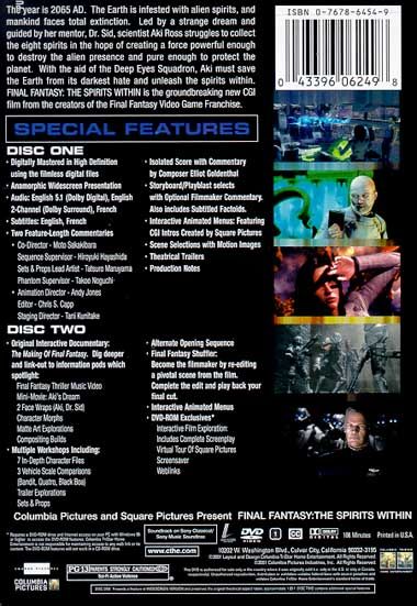 Led by a strange dream, scientist Aki Ross struggles to collect the eight spirits in the hope of creating a force powerful enough to protect the planet. With the aid of the Deep Eyes Squadron and her mentor, Dr. Sid, Aki must save the Earth from its darkest hate and unleash the spirits within.