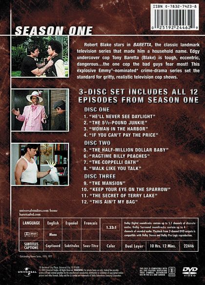 Baretta is an undercover cop in the Serpico mode. Like your standard TV-issue rule-bending loner cop, he butts heads with his excitable superior (veteran character actor Dana Elcar of MacGuyver and Baa Baa Black Sheep fame). He lives in the run-down King Edwards Motel with his scene-stealing pet cockatoo. With its ersatz funky score, Baretta is time-capsule '70s television. And, as Baretta was fond of saying, you can take that to the bank.