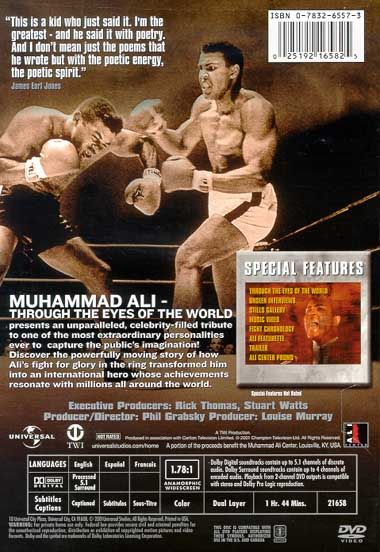 "This is a kid who just said it. I'm the greatest - and he said it with poetry. And I don't mean just the poems that he wrote but with the poetic energy, the poetic spirit" - James Earl Jones. Through the eys of the world is a unique account of one of the great icons of the 20th century, told by family, friends and fans from all over the world.