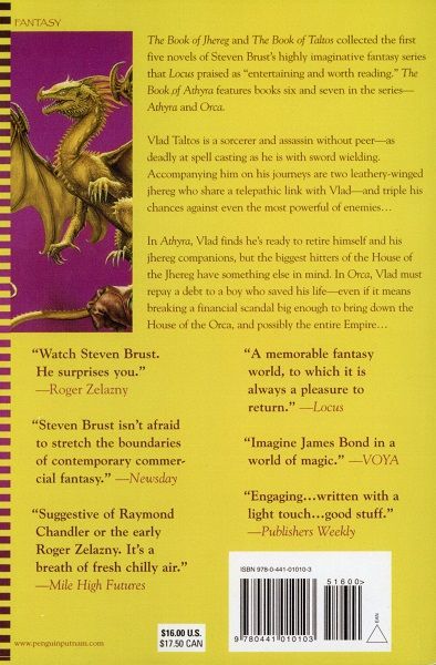 The Book of Jhereg and The Book of Taltos collected the first five novels of Steven Brust’s highly imaginative fantasy series that Locus praised as “entertaining and worth reading.” The Book of Athyra features books six and seven in the series—Athyra and Orca. Vlad Taltos is a sorcerer and assassin without peer—as deadly at spell casting as he is with sword wielding. Accompanying him on his journeys are two leathery-winged jhereg who share a telepathic link with Vlad—and triple his chances against even the most powerful of enemies… In Athyra, Vlad finds he’s ready to retire himself and his jhereg companions, but the biggest hitters of the House of the Jhereg have something else in mind. In Orca, Vlad must repay a debt to a boy who saved his life—even if it means breaking a financial scandal big enough to bring down the House of the Orca, and possibly the entire Empire…