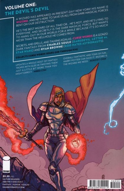 A wizard has appeared in present-day New York! His name is Wizord, and he's here to save us all from dark magical forces bent on our destruction. He's the best wizard of all time! Or...he's not, and he's lying to everyone, and secretly is the dark magical force, but wants to hang out in our world for a while because it's so much nicer than the hellhole he comes from. Secrets, and spells, and talking koalas-CURSE WORDS is a gonzo dark fantasy from CHARLES SOULE (Daredevil, Letter 44, Star Wars) and RYAN BROWNE (GOD HATES ASTRONAUTS). Collects CURSE WORDS #1-5