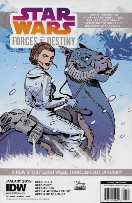 The Star Wars Forces of Destiny initiative celebrates the inspiring stories of iconic heroes from a galaxy far, far away.... Star Wars Adventures has joined the festivities with an exciting weekly series of comic books that explores all corners of the Star Wars universe, showing how choices both big and small ultimately shape the destinies of beloved characters, such as Princess Leia, Rey, Padme, Ahsoka, and Hera along with your soon-to-be favorites from The Last Jedi, Rose and Paige! Fans will be excited to discover these stories told by talent from across Star Wars novels, comics and animation, including Delilah S. Dawson, Elsa Charretier, Beth Revis, Jody Houser, and Devin Grayson! • Each issue has a variant cover by Elsa Charretier! Collect all five! • Featuring your favorite classic Star Wars characters and a couple of brand new favorites!