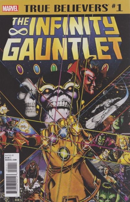 What can you get for a dollar? How about the Marvel Universe? Marvel is proud to present TRUE BELIEVERS - special introductory comics for the low price of only $1 each. Coming this April your window into the biggest stories in Marvel history costs only a buck! Enter the world of Civil War, Age of Apocalypse, Old Man Logan, Planet Hulk, the critically-acclaimed ICON series Powers and many more with the first chapters of these top-selling, critically-acclaimed collections. Just in time for Secret Wars (maybe you've heard of it? Secret Wars - the biggest Marvel event ever!), catch up on some of the most celebrated stories in Marvel histories before their appearance in the biggest comic event of 2015! Reprinting material from INFINITY GAUNTLET #1. Rated T