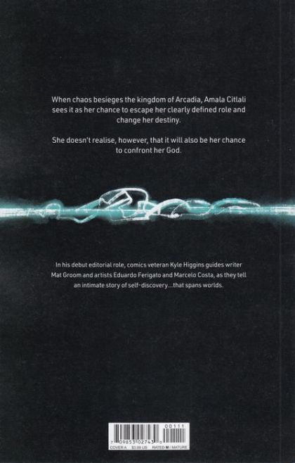 SERIES PREMIERE! Introducing a new creative team everyone will be talking about-superstar talent writer MAT GROOM and artist EDUARDO FERIGATO. When chaos besieges the kingdom of Arcadia, warrior Amala Citlali sees it as her chance to escape her clearly-defined role-and to change her destiny. But she could never have predicted that it would also be her chance to confront her God. In his debut editorial role, comics veteran KYLE HIGGINS guides this intimate, worlds-spanning story of self-discovery.