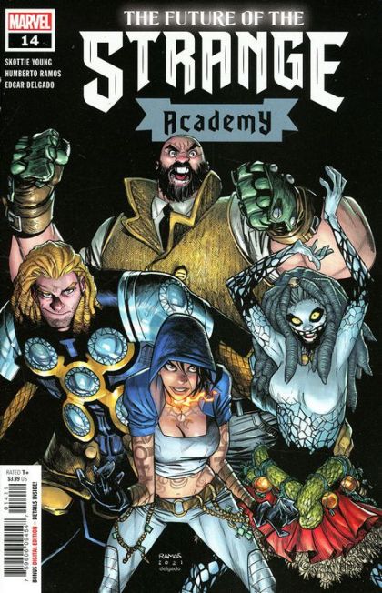 • This is it. The issue that you'll be looking back on five, ten, fifteen years from now... • See the future of Strange Academy and the Marvel Universe. • You won't believe your eyes. RATED T