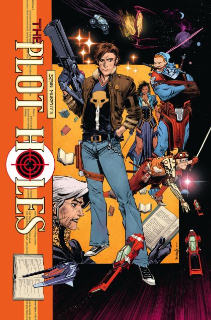 Superstar artist Sean Gordon Murphy, known for his groundbreaking series Batman: White Knight, delivers the main cover for his ongoing tale of world-hopping adventure. THE PLOT HOLES are a squad of fictional warriors who transport themselves into the pages of other books, using their unique skills to save the plots in order to stop them from being destroyed. And Cliff Inkslayer is their newest recruit, a comic creator who's just realized his world isn't real. What more is there left to say? This is the FINALE for Plot Holes! The team races towards an end - but what kind of ending will it be? Try to keep up as we leap from book to book one last time, and trust me when I say this issue has it ALL. Here we go, let's find out if Cliff and the rest of the Plot Holes can save themselves, their world, and their friend.