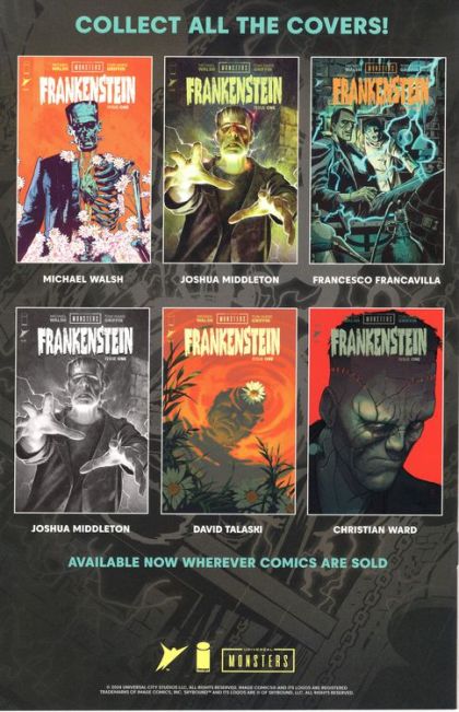 Mini-Series Premiere. A modern-day horror visionary resurrects one of the most iconic monsters. Award-winning creator Michael Walsh (The Silver Coin) presents an electrifying new vision of the horror classic. Each issue of the limited series tells the shocking story behind one of the body parts used to create the unforgettable monster in the original film. In this first issue, Dr. Henry Frankenstein begins his unholy quest to create life by robbing the grave of a decorated police officer. But little does he know that the corpse has a son who is mourning a father-and that this young boy will forever change Frankenstein's life.