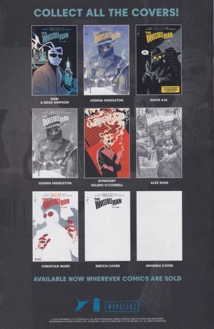 MINISERIES PREMIEREJAMES TYNION IV & DANI RESSURECT A HORROR ICON! **Jack Griffin has always been invisible to the people around him—at least in his own mind. But when an experimental breakthrough presents a path to make his dreams of invisibility a reality, no one—not even the woman he loves—will stand in his way. Witness Griffin's legendary descent into madness as his humanity fades away and the monster inside is revealed, leaving only...THE INVISIBLE MAN! The horror dream team of JAMES TYNION IV (SOMETHING IS KILLING THE CHILDREN, EXQUISITE CORPSES) and DANI (The Low, Low Woods**) reveal their vision for one of the most horrific monsters in cinematic history!