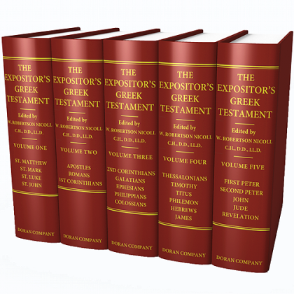 1 The Synoptic Gospels/ Alexander Balmain BruceThe gospel of St John/ Marcus Dods2 The Acts of the Apostles/ R.J. KnowlingSt Paul's epistle to the Romans/ James DenneySt Paul's 1st epistle to the Corinthians/ G.G. Findlay3 The 2nd epistle to the Corinthians/ J.H. BernardThe epistle to the Galatians/ Frederic RendallThe epistle to the Ephesians/ S.D.F. SalmondThe epistle to the Philippians/ H.A.A. KennedyThe epistle to the Colossians/ A.S. Peake4 1st & 2nd epistles to the Thessalonians/ James Moffatt1st & 2nd epistles to Timothy & Epistle to Titus/ Newport J.D. WhiteThe epistle to Philemon/ W.E. OesterleyThe epistle to the Hebrews/ Marcus DodsThe general epistle of James/ W.E. Oesterley5 The 1st epistle general of Peter/ J.H.A. HartThe 3nd epistle general of Peter/ R.H. StrachanThe Epistles of John/ David SmithThe General epistle of Jude/ J.B. MayorThe Revelation of St John the Divine/ James Moffatt