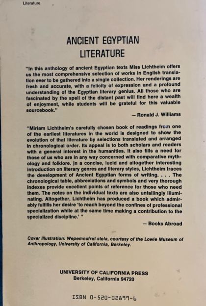"First published in 1973 - and followed by Volume II in 1976 and Volume III in 1980 - this anthology has assumed classic status in the field of Egyptology and portrays the remarkable evolution of the literary forms of one of the world's earliest civilizations. Volume I outlines the early and gradual evolution of Egyptian literary genres, including biographical and historical inscriptions carved on stone, the various classes of literary works written with pen on papyrus, and the mortuary literature that focuses on life after death. Introduced with a new foreword by Antonio Loprieno. Volume II shows the culmination of these literary genres within the single period known as the New Kingdom (1550-1080 B.C.). With a new foreword by Hans-W. Fischer-Elfert. Volume III spans the last millennium of Pharaonic civilization, from the tenth century B.C. to the beginning of the Christian era. With a new foreword by Joseph G. Manning" -- Amazon.com.
