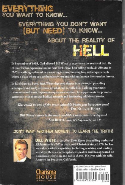Hell is a popular topic in the marketplace today. But what about hell interests people most? Which questions are they REALLY asking? Through the numerous book tours and media interviews he has conducted with his New York Times best-selling 2006 release, 23 Minutes in Hell, Bill Wiese has listened to the top questions asked by both readers and the media and conclusively addresses then in his follow-up book, Hell. Formatted similar to Randy Alcorn's Heaven, this book includes stories and experiences from others with who he has talked, biblical information and teaching, and specific Scripture passages related to the topic. It will provide a response to recent media quoting pastors and church leaders worldwide who are not teaching that hell is a real place of torment.