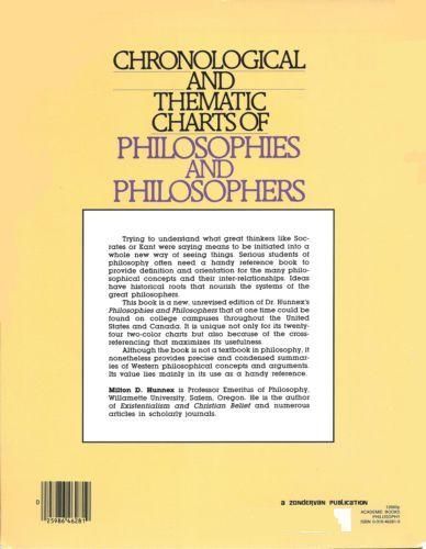Trying to understand what great thinkers like Socrates or Kant were saying means to be initiated into new ways of seeing things. Serious students of philosophy often need a handy reference book to provide definition and orientation for the many philosophical concepts and their interrelationships. Ideas have historical roots that nourish the systems of the great philosophers. This book is an unrevised edition of Dr. Hunnex's Philosophies and Philosophers that has been used on college campuses throughout the United States and Canada. It is unique not only for its twenty-four two-color charts but also because of the cross referencing that maximizes its usefulness. Although the book is not a textbook in philosophy, it nonetheless provides precise and condensed summaries of Western philosophical concepts and arguments. Its value lies in its use as a handy reference.