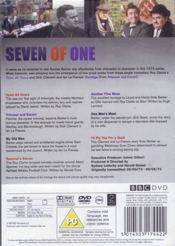 A welcome DVD release for this series of seven single comedies featuring the many faces of Ronnie Barker. As well as highlighting Barker's extraordinary comic range (and providing an early screen outing for David Jason) the series was the genesis of not one but two much-loved British sitcoms. Open All Hours appears here in embryonic pilot form and "Prisoner and Escort" went on to become perhaps Barker's best-loved creation, Porridge. Also included are "My Old Man", "Spanner's Eleven", "Another Fine Mess", "One Man's Meat" and "I'll Fly You For A Quid" (where Barker plays a both father and son).