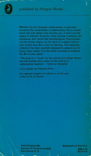 Whether you are intrigued, embarrassed, or just plain scared by the complexities of mathematics, this is a book which will both delight and infuriate you. Culled from the pages of Scientific American, these puzzles, problems, and paradoxes, with names like Hexaflexagons, Polyominoes, and the Icosian Game, are the work of a master and the best of their kind. But a word of warning. This beguiling collection has been specially designed to seduce you for hours, days, weeks, from the duller business of practical life. Be on your guard!
