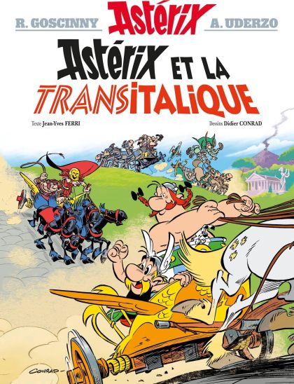 "Célèbres pour leurs nombreux voyages à travers le Monde Connu, Astérix et Obélix vont cette fois découvrir les nombreux peuples de la péninsule italienne : les Italiques ! En effet, si Astérix et Obélix ont plusieurs fois arpenté les rues de Rome, ils vont pour la 1e fois découvrir que les habitants de l'Italie ne sont pas tous des Romains, n'en déplaise à Obélix ! Les multiples régions de la péninsule sont au contraire habitées par une grande diversité de peuples qui tiennent à préserver leur indépendance, et voient d'un mauvais oeil les velléités de domination de Jules César et ses légions. Pour Astérix et Obélix, s'engage dans Astérix et la Transitalique une grande aventure aux confins de la péninsule, à la découverte d'une Italie telle que vous ne l'avez jamais vue !" - publisher's website.