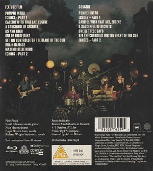 British progressive rock band Pink Floyd perform at the ancient Roman Amphitheater in the ruins of Pompeii, Italy in 1971. Although the band perform a typical live set from the era, there is no audience beyond the basic film crew. The Bluray version of 2025 contains the following audio streams: 96kHz / 24bit LPCM uncompressed, 96kHz / 24bit 5.1 Dolby TrueHD, Dolby Atmos (Feature film only). You can choose to watch the entire movie or just the concert.