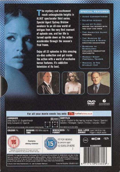 Alias is an American action/drama television series created by J.J. Abrams which was broadcast on ABC from September 30, 2001 to May 22, 2006, spanning five seasons. It starred Jennifer Garner as Sydney Bristow, an agent who had been tricked to believe she was working for the U.S. government but had, in fact, been working for a criminal organization named the Alliance of Twelve. Upon learning this Sydney became a double agent for the real CIA, feeding information from SD-6 to them.