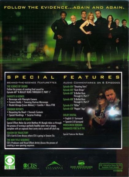 CSI is an innovative, new type of crime drama in which the characters use cutting-edge forensic tools to examine the evidence to solve the case. Rather than a 'whodunnit' cop show (investigating witnesses/suspects), CSI explores the 'howdunnit'. CSI has been the number one scripted series in the Nielsen ratings for three years running. CSI is now in its tenth amazing season.