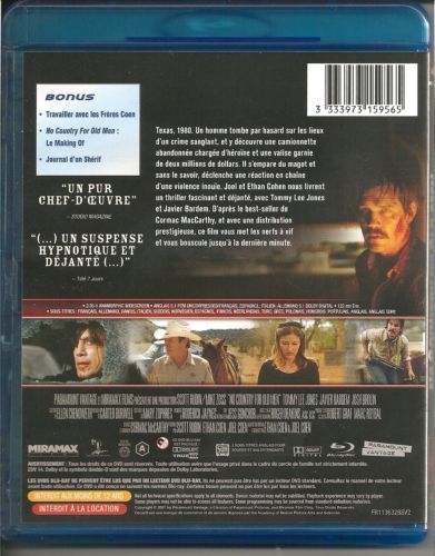 Texas, 1980. Alors qu'il chasse près de la frontière du Mexique, Llewelyn Moss (Josh Brolin) découvre par hasard les cadavres d'une bande de trafiquants de drogue et une mallette contenant deux millions de dollars dont il s'empare. Il se retrouve poursuivi par Anton Chigurh (Javier Bardem), un tueur psychopathe engagé initialement pour récupérer l'argent, et le shérif Bell (Tommy Lee Jones), un homme vieillissant et désabusé...