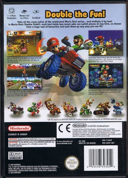 The Mushroom Kingdom just got a whole lot more hectic as Mario and company double up for furious kart racing, but this time they're driving two-seaters! Pick a partner and race through wild courses as you compete in tough circuits or duke it out with power-ups and items in battle arenas.