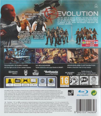 Brink is an immersive shooter that blends single-player, co-op, and multiplayer gameplay into one seamless experience, allowing you to develop your character across all modes of play. You decide the role you want to assume in the world of Brink as you fight to save yourself and mankind's last refuge for humanity. Brink offers a compelling mix of dynamic battlefields, extensive customization options, and an innovative control system that will keep you coming back for more.