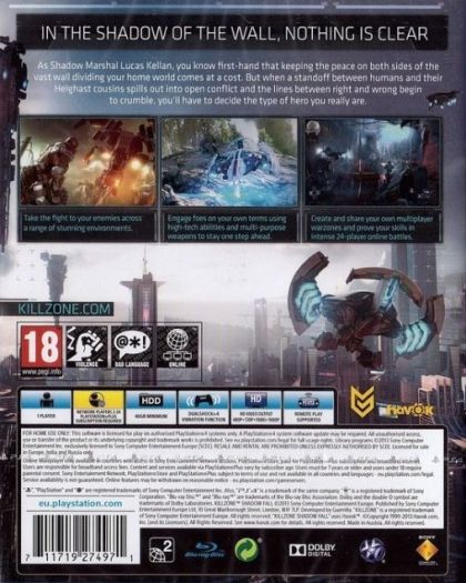 Killzone: Shadow Fall is the latest installment in the Killzone(r) franchise developed exclusively for the PlayStation(r)4 system by Guerrilla Games. Thirty years after the events of Killzone(r)3, the world is a very different place. It is up to Lucas Kellan, a Vektan Shadow Marshal, to stop a series of escalating events that could cause the destruction of his homeworld.