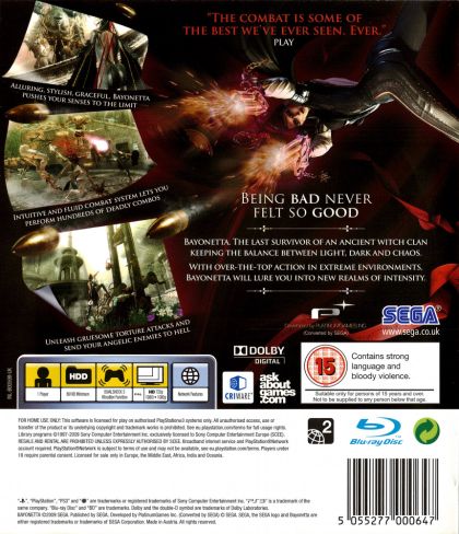 Bayonetta is a cinematic, stylized action game from the famed creative mind of renowned game developer, Hideki Kamiya. The game's protagonist is a graceful, gun-wielding witch with powers beyond the comprehension of mere mortals. Facing off against countless fantastic enemies in stylish yet action-packed combat, Bayonetta uses outlandish finishing moves to take the action genre to a new level of excellence.