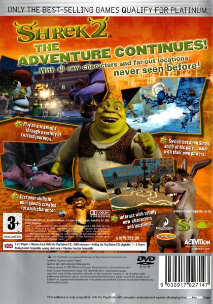 Shrek 2: The Game (working title) takes players on a wild adventure with Shrek and his buddies. Gamers revisit key scenes from the movie sequel while discovering all-new locations and characters. Shrek 2: The Game combines squad-based action with traditional action-adventure elements. Players can control a team of four and play as Shrek or any of his seven friends, switching between each to best utilize the character's unique abilities to solve puzzles, fight monsters and complete dangerous and thrilling adventures.