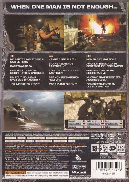 As ex-Army Rangers now turned contractors for a PMC, ARMY OF TWO challenges you to fight along side your team-mate on missions developing and using the combined skills necessary to become the deadliest TWO man military outfit. Whether with a live player or ARMY OF TWO's unique partner AI, ARMY OF TWO delivers a revolutionary new way to play an action shooter.