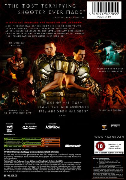Science has unlocked the gates to the unknown. A sci-fi horror masterpiece, DOOM 3 is like nothing you've ever experienced. Dramatic storyline, pulse-pounding action, incredible graphics, and revolutionary technology combine to draw you into the most frightening and gripping first-person gaming experience ever created. Fight for your life in single player, online multiplayer, or the Xbox Live exclusive co-op mode.