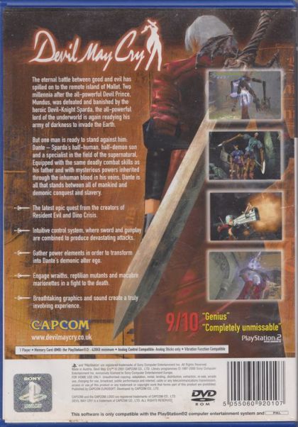 Legend tells of two millennia ago, in the darkest reaches of hell, a demon swordsman named Sparda, awoke to justice and rebelled against the devil, waging a one-man war in support of the human world. Now, 2000 years later, a dark figure named Dante, private investigator of the supernatural, finds clues that the devil is rallying to rise up again against mankind. Who was Spahda and how does Dante fitinto this gothic puzzle? Deep within Dante's blood lies the power of ancient demons and the key to unlock the doors to the dark realm. Follow Dante as his destiny is played out in a gothic battle of good against evil. If he succeeds, the DevilMay Cry.